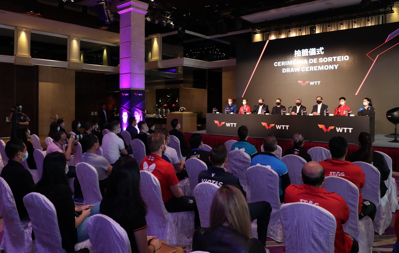 由澳门特别行政区政府体育局及世界乒乓球职业大联盟(WTT)主办、澳门乒乓总会协办的「WTT 澳门国际乒乓球赛2020 ─ 由银河娱乐集团呈献」将于明天起一连五日(11月25日至29日) 在塔石体育馆举行,并于今天进行了抽签仪式。出席抽签仪式的嘉宾包括:体育局局长潘永权,世界乒乓球职业大联盟理事会主席刘国梁、世界乒乓球职业大联盟总监及国际乒联首席执行官史蒂夫· 丹顿,银河娱乐集团副主席吕耀东,以及参赛球手马龙(中国)、丁宁(中国)、马蒂亚斯· 法尔克(瑞典)和张安(美国)等。