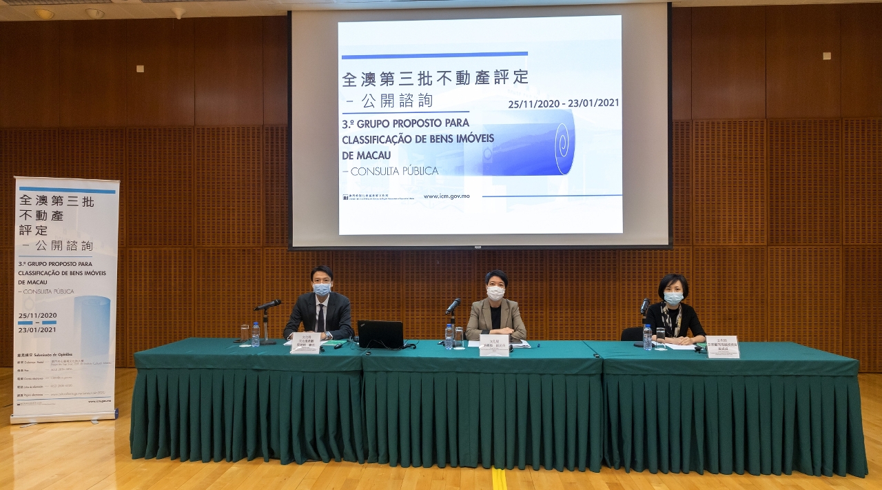 首场公众咨询会由文化局副局长梁惠敏、文化遗产厅厅长蔡健龙、首席顾问高级技术员崔贞贞出席,向巿民详细讲解《全澳第三批不动产评定》咨询文本的内容,并听取公众意见,集思广益。第二场公众咨询会续于12月12日(星期六)下午3时在澳门文化中心会议室举行,欢迎市民积极参与、发表意见。