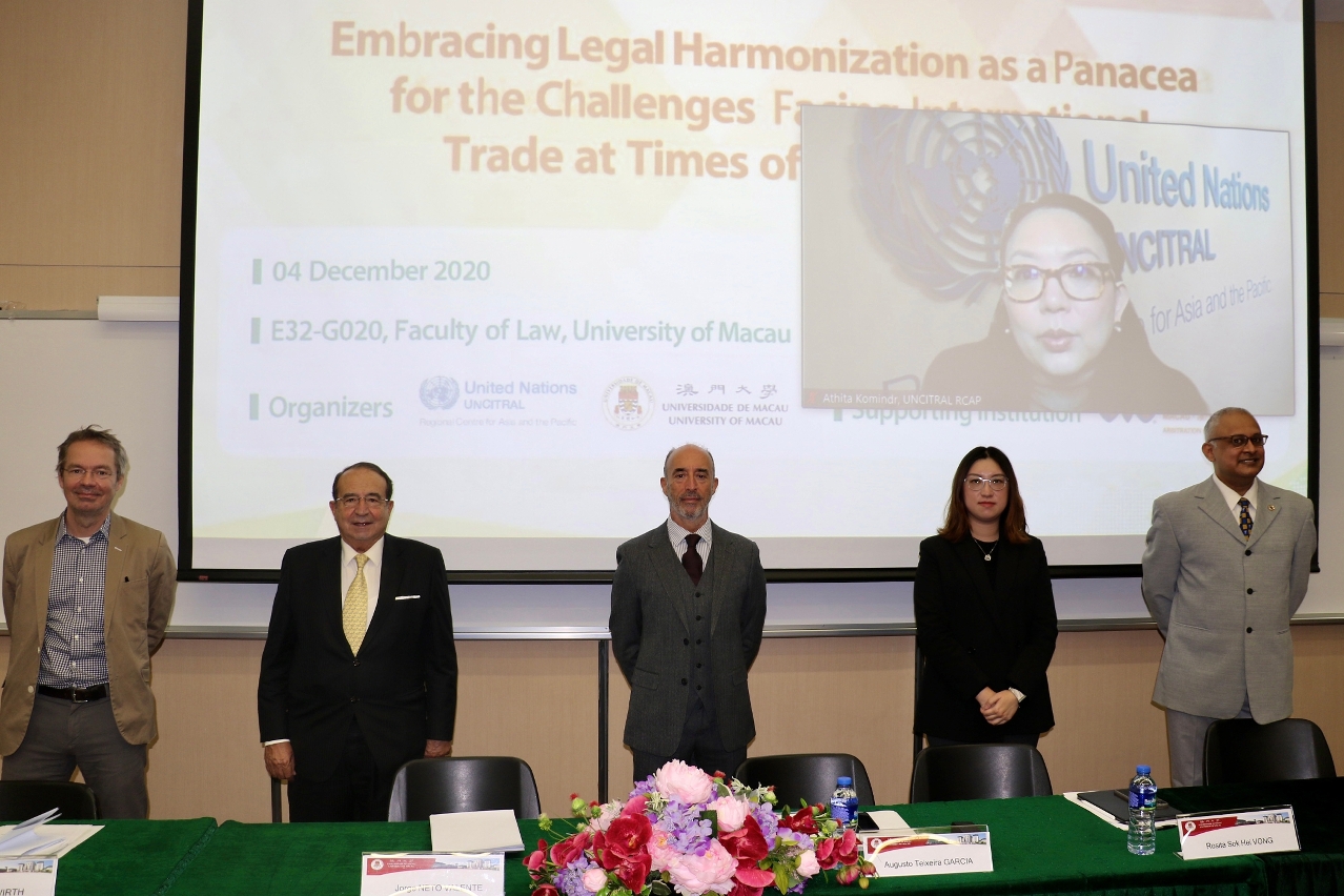 澳门大学与联合国国际贸易法委员会亚太区域中心今(4)日举办研讨会,多位专家学者以“通过法律统一化来解决全球疫情期间全球贸易面临的挑战”为题,以线上结合线下的形式就疫情期间国际贸易面临的挑战进行探讨。