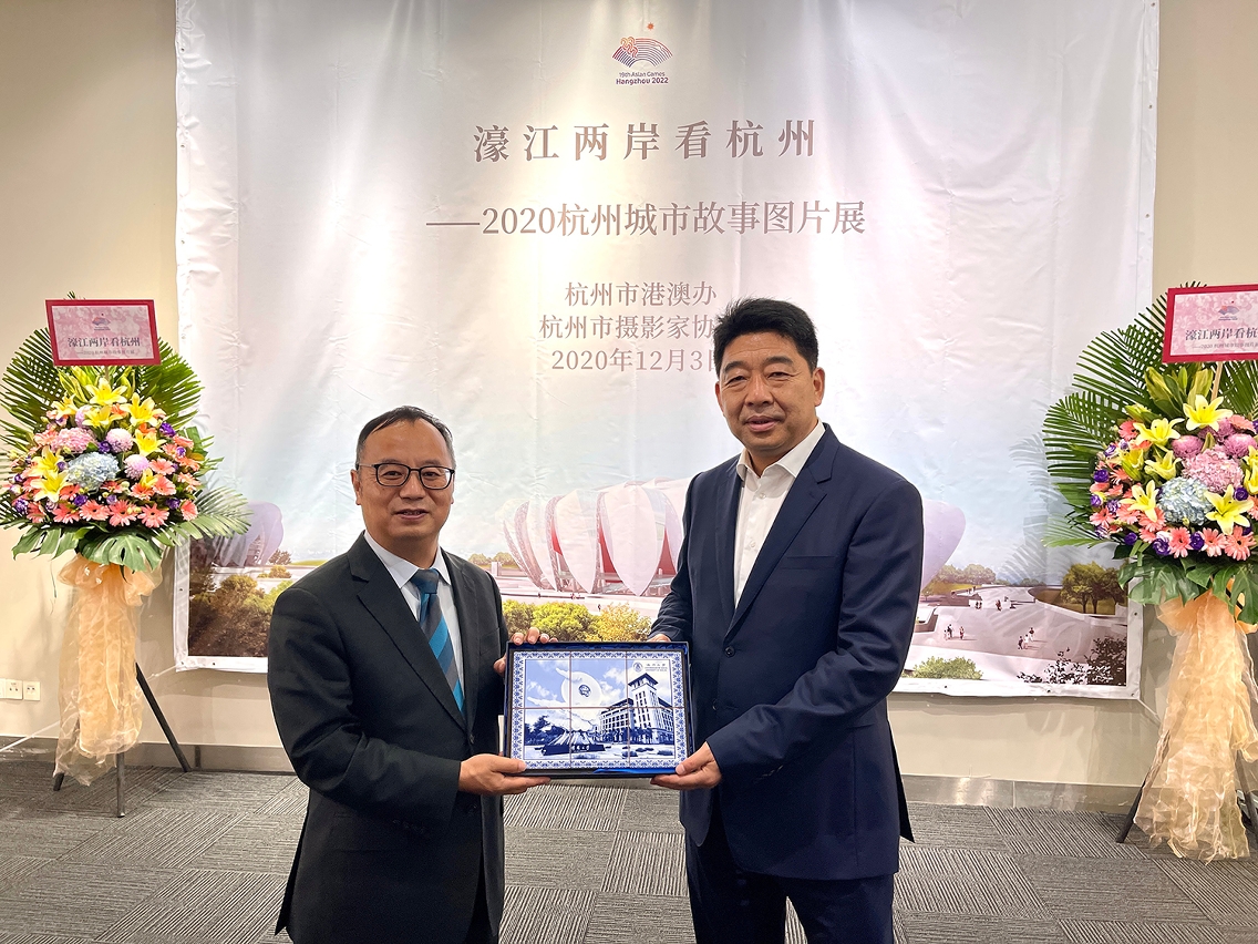 “濠江两岸看杭州——2020杭州城市故事图片展”昨(3)日在澳门大学举行开幕礼,杭州市副市长柯吉欣一行亲临澳大出席活动,并在澳大校长宋永华的陪同下参观展览。是次展览展至12月10日,欢迎有兴趣人士参观。