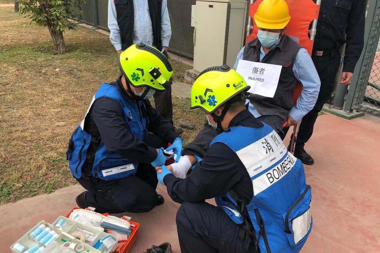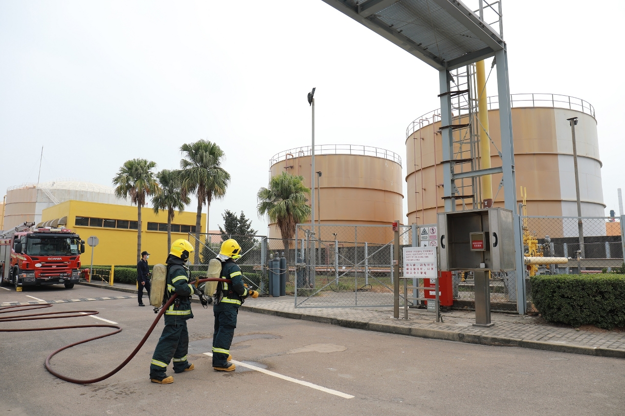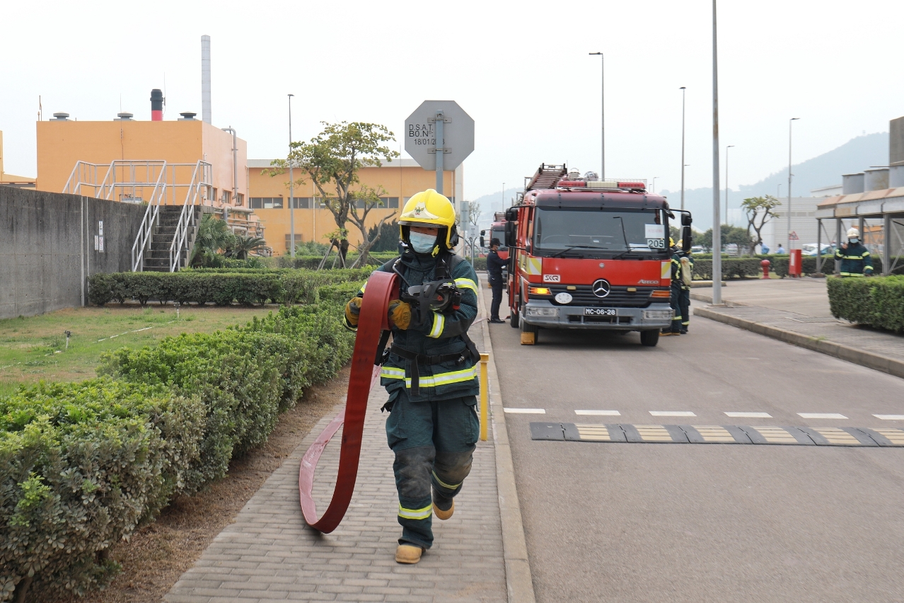 为加强与路环发电厂在发生紧急事故时的应急救援工作及协调沟通,消防局于本年12月11日,协助澳门电力股份有限公司在路环发电厂内举行天然气泄漏事故演习。
