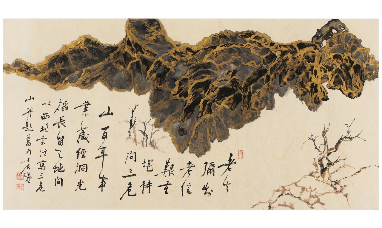 饶宗颐教授是蜚声国际的汉学泰斗,在文学、艺术、学术等多个领域均有卓越成就和突出贡献,可谓“一身而兼三绝”。他提倡学艺相携,除了研习前人技法,学术上的创获与对自然景物的观察,也影响着他的创作。他的书画艺术秉承了明清以来文人书画的优秀传统,国画涉猎山水、人物、花鸟,既有传统流派的摹仿,亦有各地风光写生,更有自成风格的创作。画法方面集众家之长,自成一格;又植根于古文字,并将上古文字入书。
