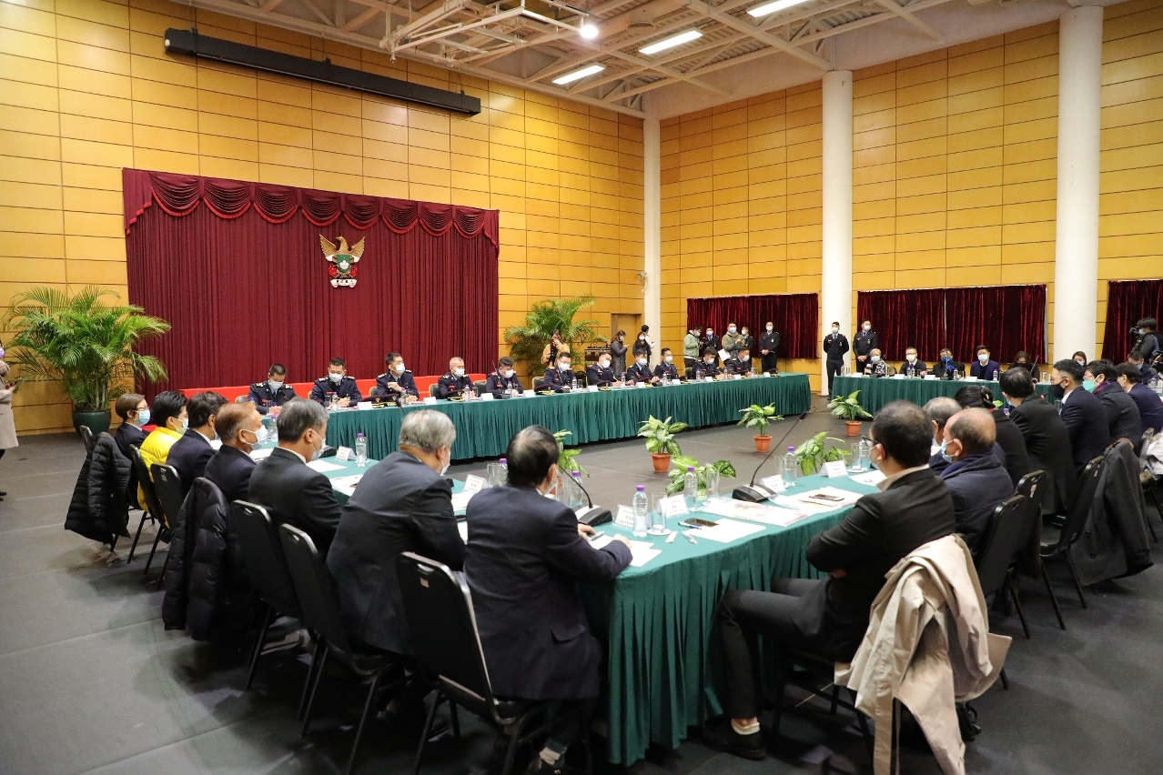 于2021年1月12日上午,澳门物业管理业商会刘艺良永远会长、澳门街坊会联合总会吴小丽理事长及澳门不动产管理专业技术人员协会杨永泰会长等一行30多人到访消防局总部进行会议;会议由消防局局长梁毓森消防总监主持,各领导及部门主管列席,双方就冬防及新春期间的消防工作进行深入交流。