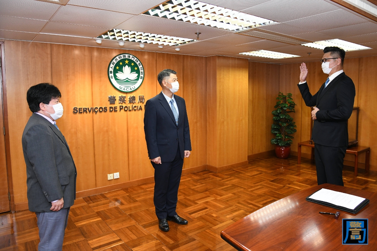 根据保安司司长批示,自2021年1月28日起,委任司法警察局黄志康一等督察为警察总局局长助理,主管行动策划中心。黄志康一等督察在警察总局局长梁文昌见证下,宣誓就任为警察总局局长助理一职。仪式于今(28)日上午在警察总局举行,出席仪式的还有局长助理刘运嫦、王健、局长办公室协调员赵汝民以及各部门主管及同事。