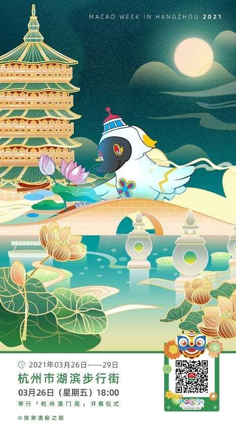 澳门特区政府旅游局官方微信帐号、微博、小红书及抖音帐号稍后将有更多“杭州澳门周”活动信息,请大家关注。此外,亦呼吁旅客来澳前办妥入境及相关防疫手续,留澳期间遵守澳门政府卫生防疫指引。