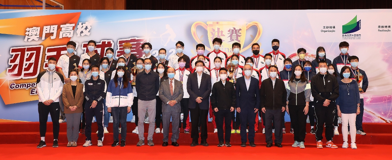 由教育及青年发展局主办、澳门羽毛球总会承办的澳门高校羽毛球赛2021决赛及颁奖礼日前在澳门浸信中学体育馆举行,今届赛事吸引了澳门7所院校的学生报名参加,团体奖分别由澳门大学夺得冠军、澳门科技大学夺得亚军、澳门理工学院夺得季军及澳门旅游学院夺得殿军。