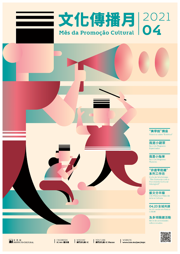 文化传播,是在感受文化之美中的创造、交流与共享。文化局藉策划“文化传播月”,在春意盎然的4月带来生活美学讲座、工作坊、全城共读及一系列精选活动,将艺文体验带到日常生活当中。文化局局长穆欣欣与澳门乐团音乐总监暨首席指挥吕嘉将主讲“美学说──生活中无处不在的美”讲座,以新颖方式及“衣、食、住、行”等生活话题,与观众谈美,澳门乐团会配合讲者内容即场演奏乐曲,活动设简单饮品与小食,让参与者在美妙乐韵及美味中感受艺术与生活的交融。“文化传播月”同时重视不同观众的参与,“我是小指挥”工作坊由澳门乐团与澳门扶康会欣悦展能艺术工作室合作,向有特殊教育需要的儿童传递音乐指挥的基本知识,藉音乐艺术共建社区共融。