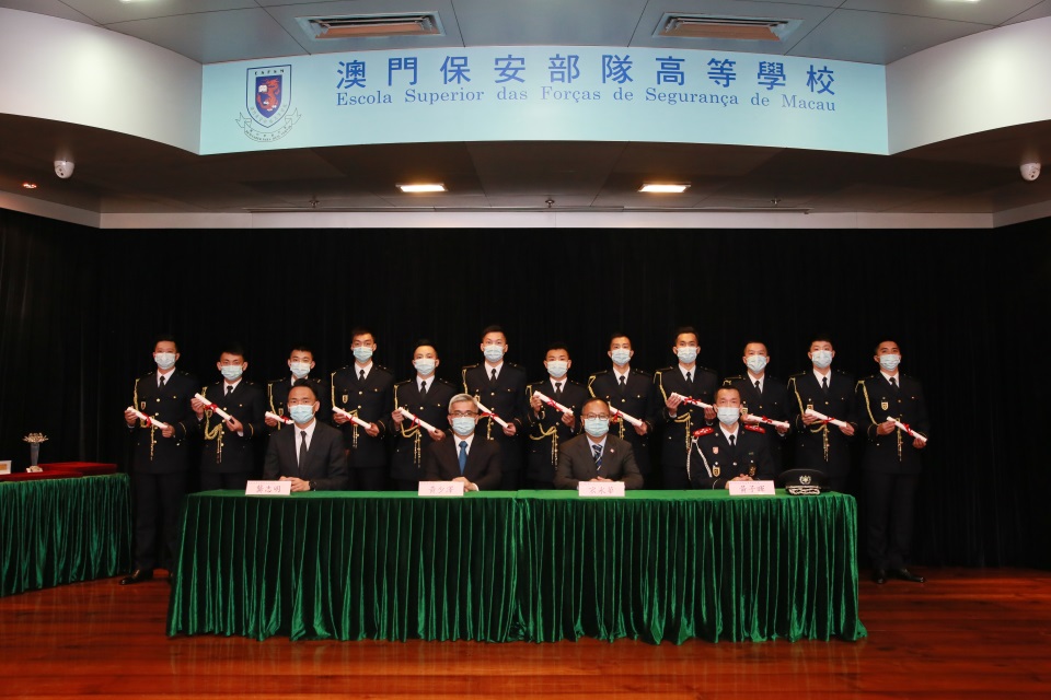 4月8日,澳门保安部队高等学校举行第十六届消防官培训课程毕业典禮暨副一等消防区长就职仪式。典礼由保安司黄少泽司长主持,与嘉宾共同见证毕业学生就职成为消防局副一等消防区长。