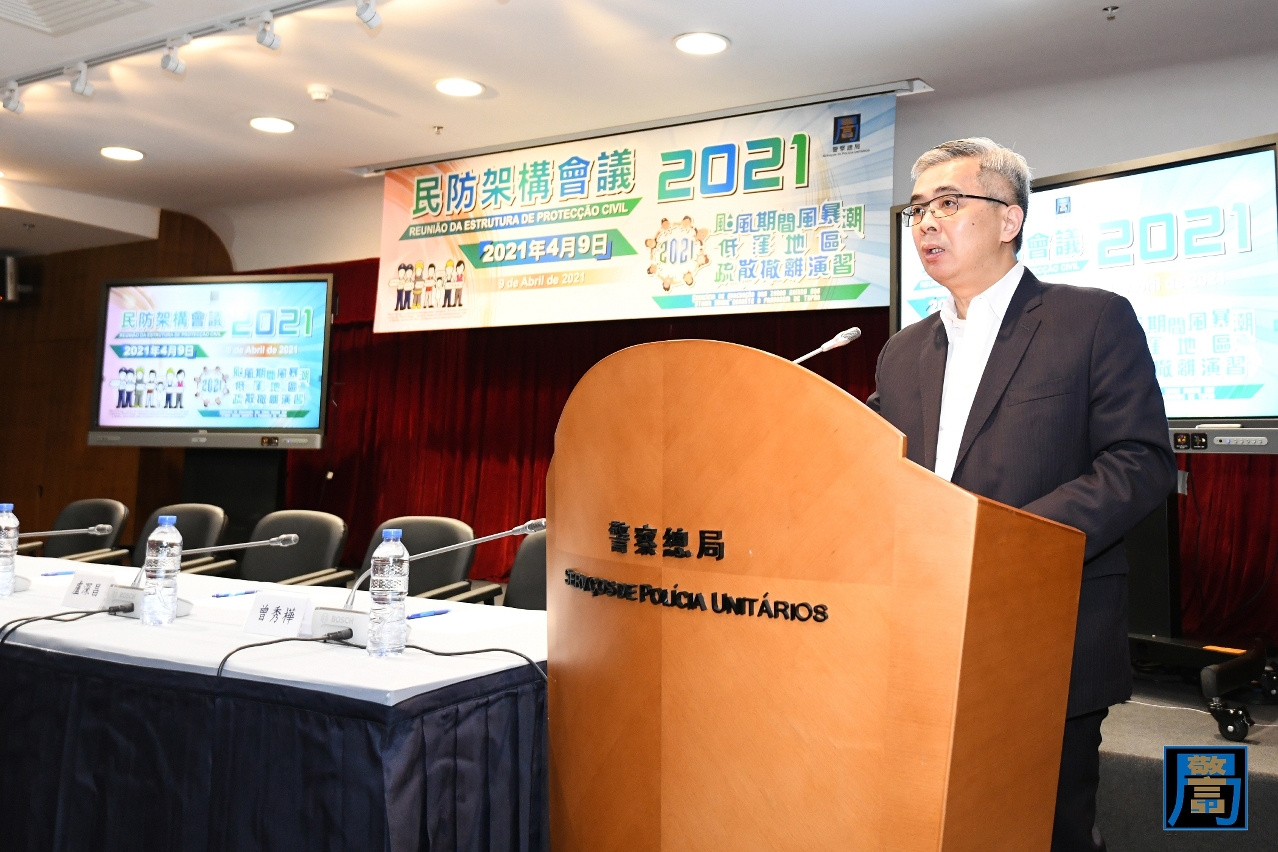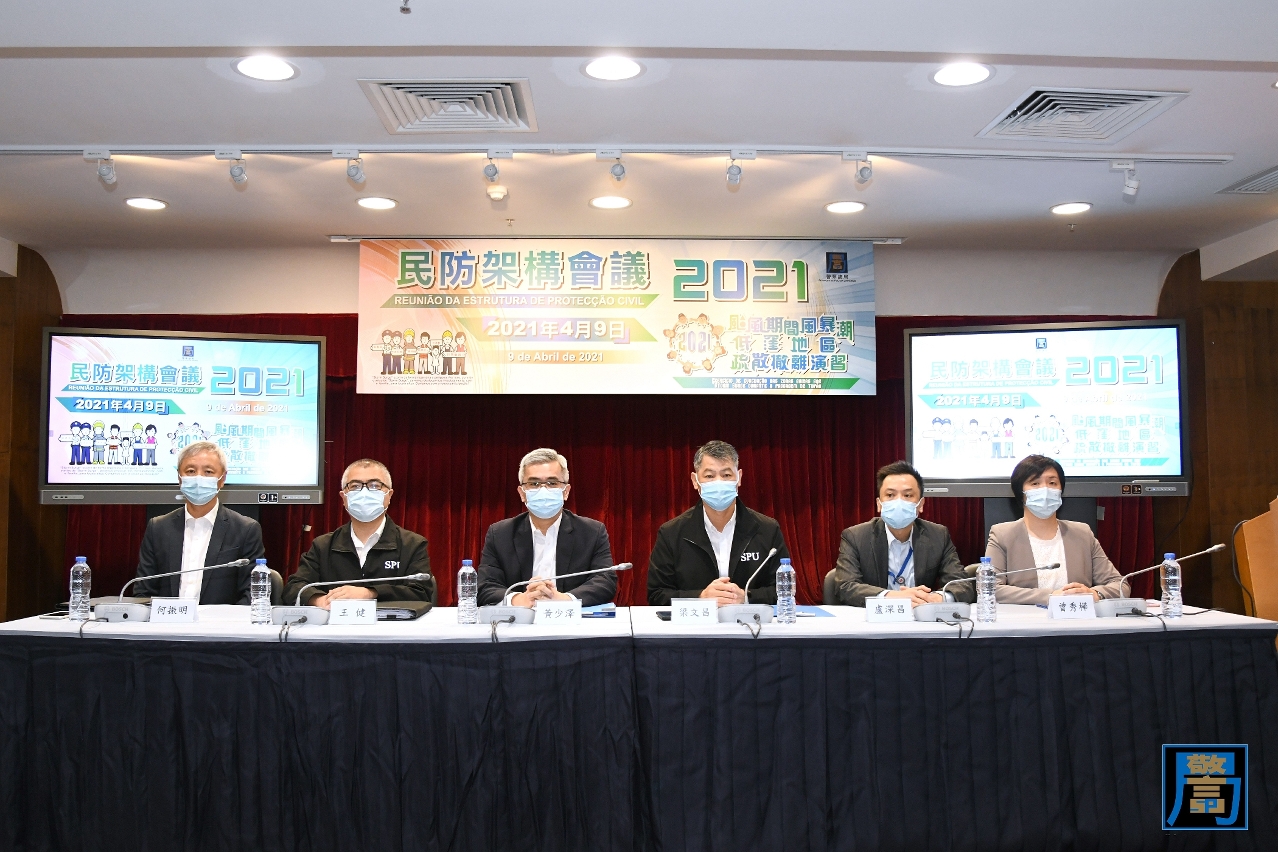 “2021年民防架构会议”于4月9日上午在北安出入境事务大楼举行,保安司司长、联合行动指挥官黄少泽联同警察总局局长梁文昌,及各个民防架构成员的代表出席会议。
