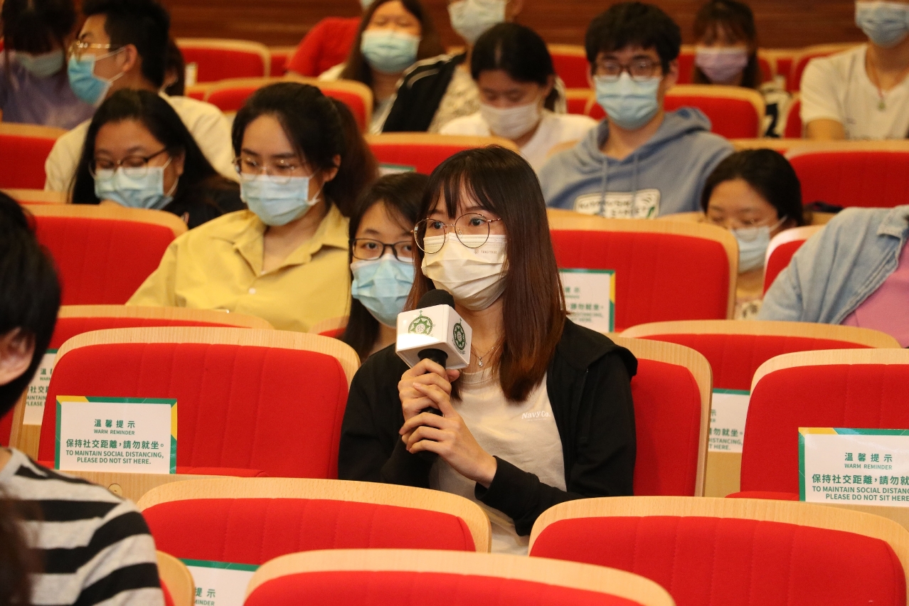 华子锋向学生分享自身从事中国与葡语国家相关业务的个中销售技巧及克服难题等经验。同时,他表示自己作为一名澳门土生葡人,早已洞悉融入国家发展大局的趋势,鼓励学生利用自身优势去发展中葡平台业务、开拓内地尤其是大湾区市场。