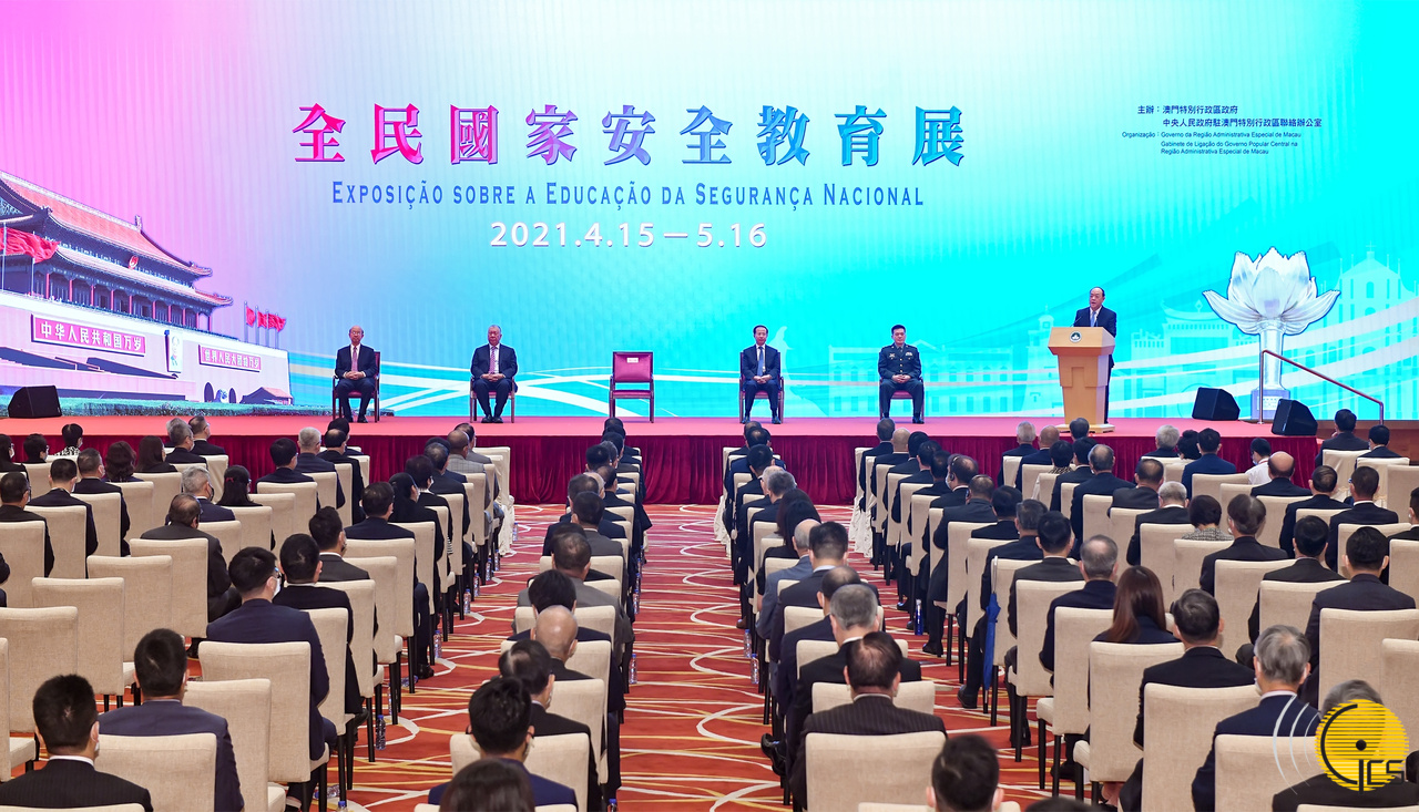 由澳门特别行政区政府与中央人民政府驻澳门特别行政区联络办公室合办的“全民国家安全教育展”今天在中国与葡语国家商贸合作服务平台综合体展览厅揭幕。