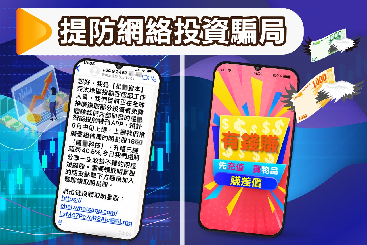 - 切勿轻信背景不明的投资或理财公司,应透过合法机构或平台进行投资交易;