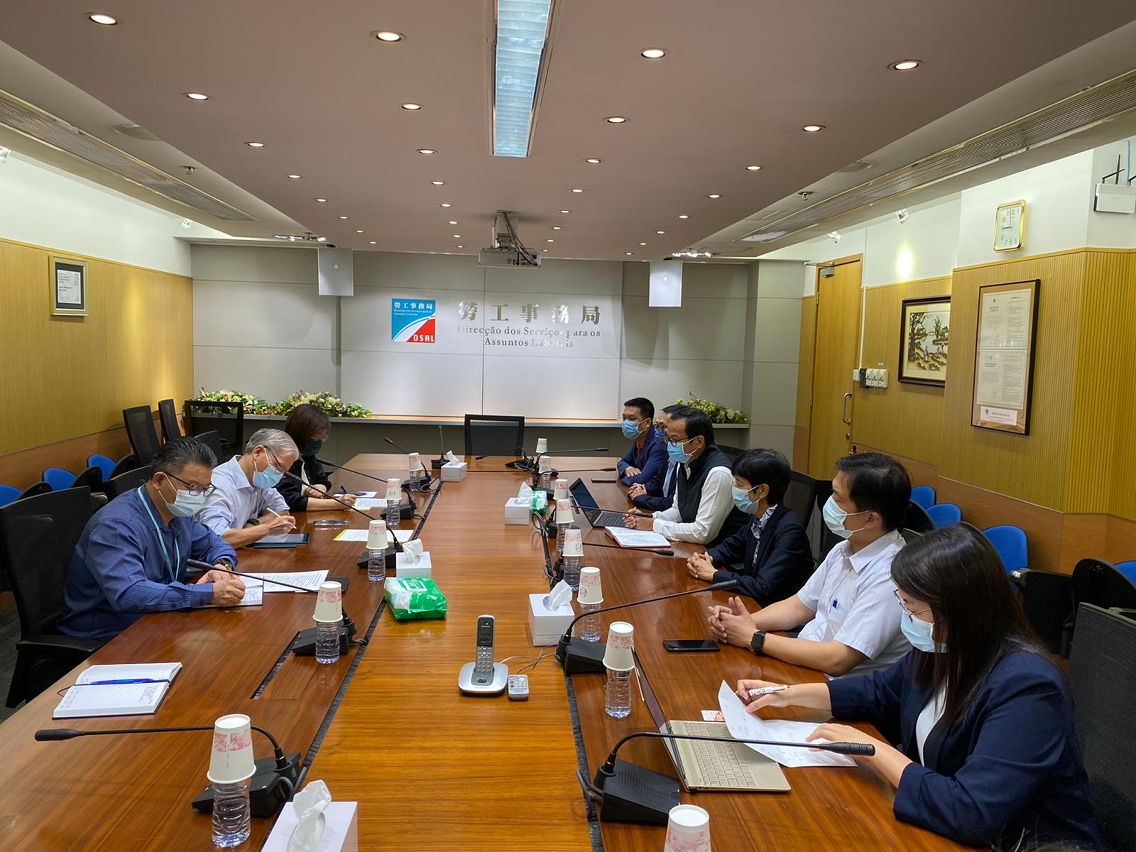 劳工局局长黄志雄、副局长陈元童及就业厅厅长李丽琼于今(26)日,与澳门工会联合总会会长何雪卿、副会长林伦伟、副理事长李静仪、梁孙旭、李振宇及权益委员会主任蔡锦富等人会面,会上工联向劳工局提交有就业需求市民的资料,并就本地雇员的就业情况等问题进行交流。劳工局感谢工联对就业配对工作的关注和配合,会争取一个月内对名单内人士安排配对转介。