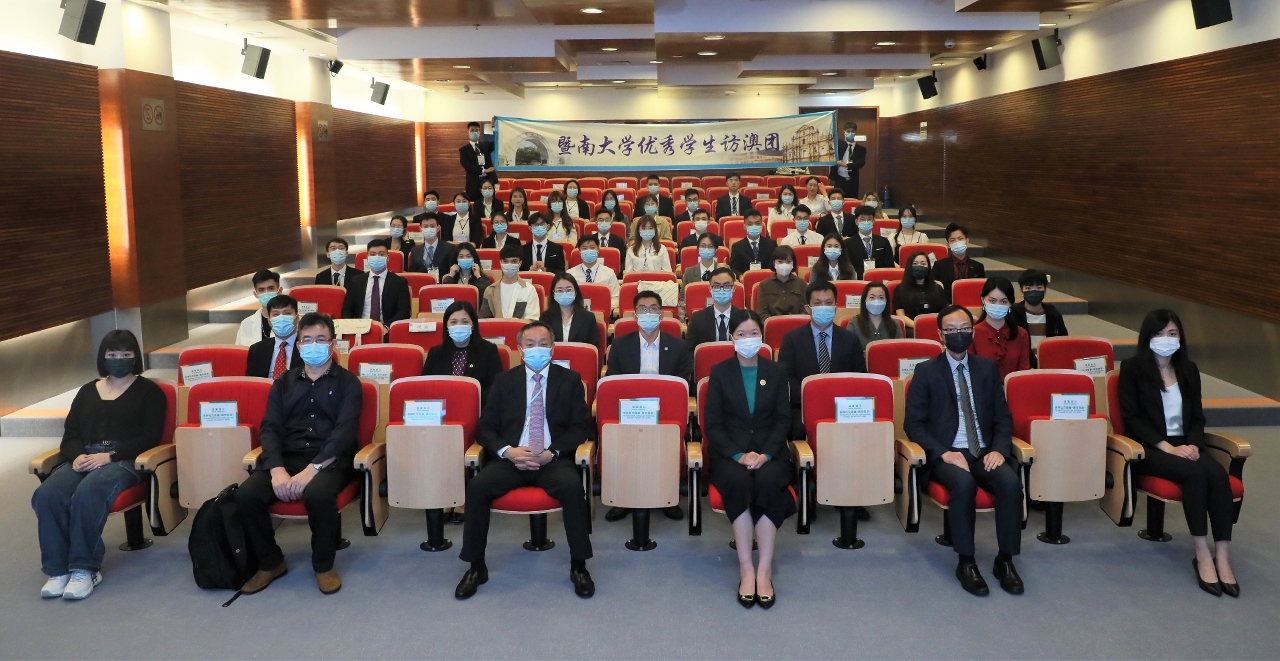 为加强穗澳两地高校合作,暨南大学优秀学生访澳团一行四十八人,由副书记孙彧率领,暨南大学澳门校友会人员陪同,于4月27日上午到访澳门理工学院,并受到副院长李雁莲、学生会理事长伍家琪等欢迎接待。两校期盼深化合作,为粤港澳大湾区高等教育合作贡献力量。
