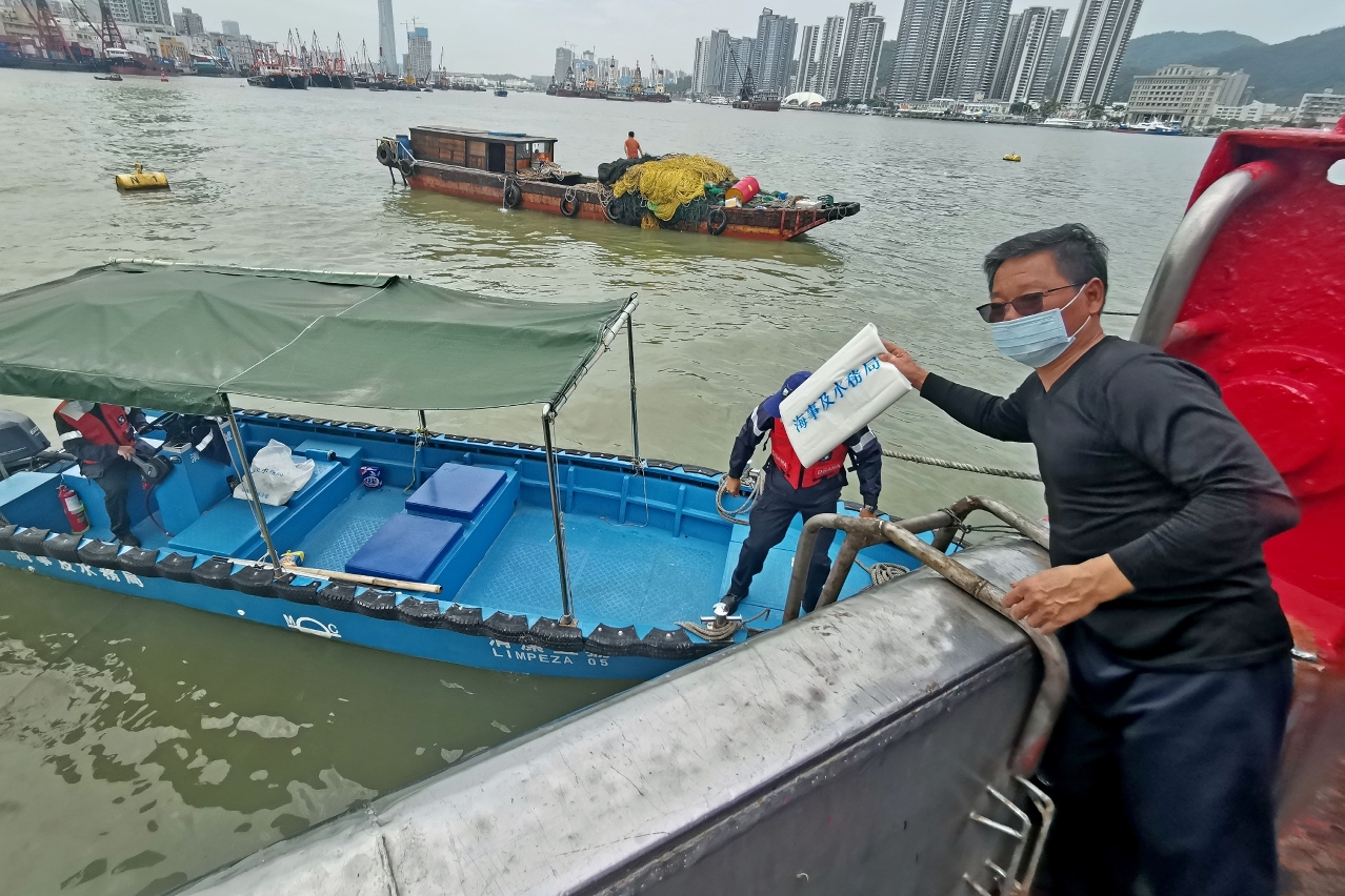 海事局今年亦继续与渔民互助会合作收集渔船的生活垃圾,与业界合力共建清洁卫生的海上环境。而渔民互助会在收集生活垃圾期间,亦会巡视锚泊在内港的渔船,如发现异常时会实时通报海事局或海关,以及时处理突发事件。