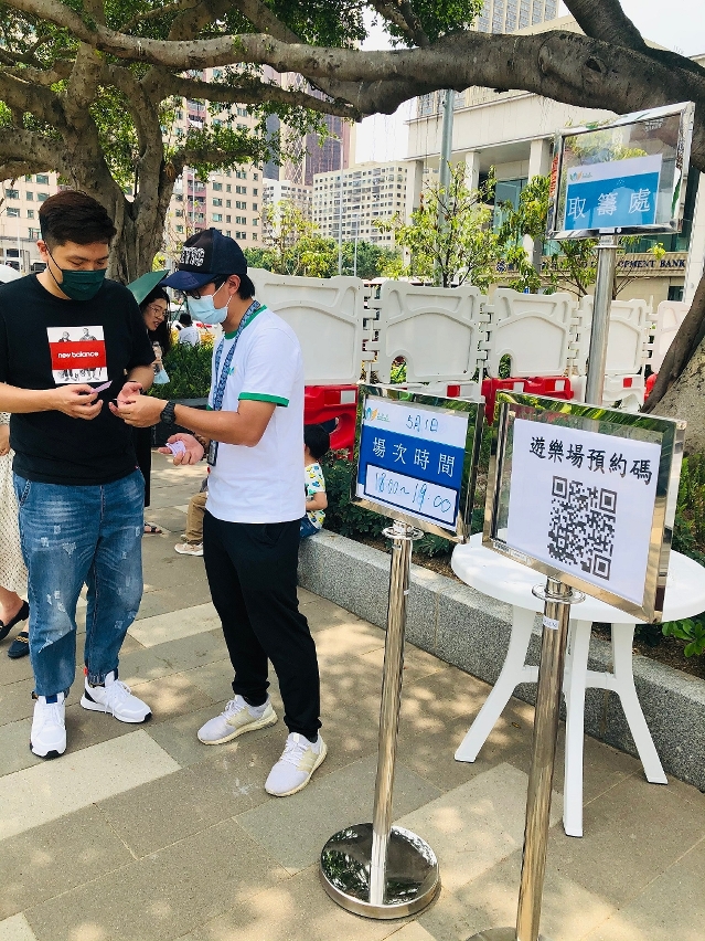 为缩短现场轮候时间及疏导人潮,市民可以透过扫描二维码(QRCode)或登入“绿化设施预约系统(人)”https://app.iam.gov.mo/gfbooking预约场次。预约者在登入系统选择相应的场次后,输入电话号码就可以接收确认信息。活动时段须凭已成功预约之二维码入场,而每个二维码最多可供三人进场。