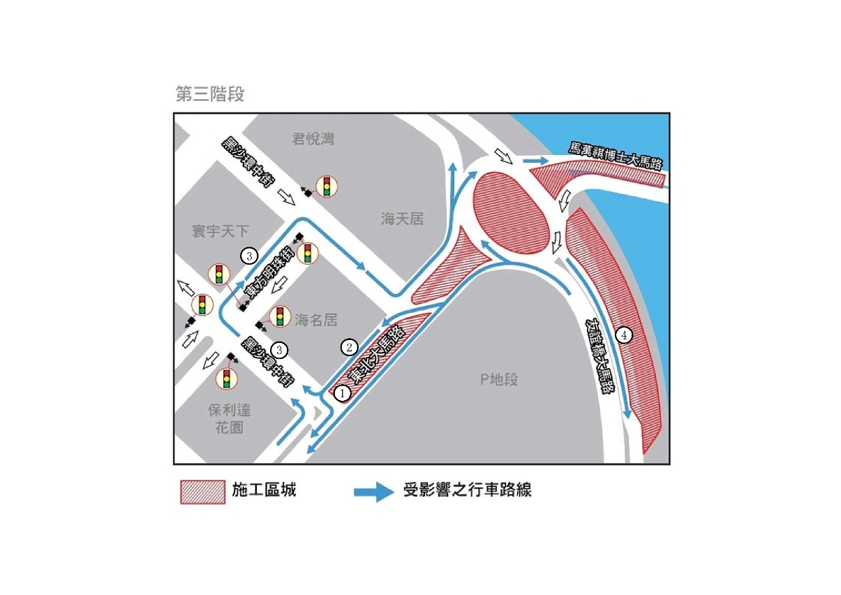 本次的交通改道措施,受现场施工环境的限制,行车条件将较为复杂,建议市民提早出门以熟悉路况,并遵守现场交通警员的指挥及安排。