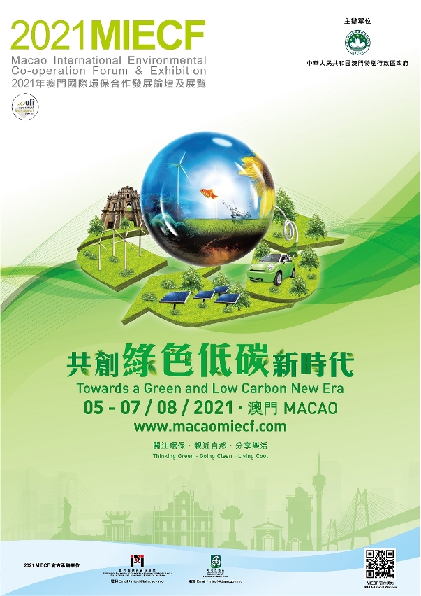 “2021年澳门国际环保合作发展论坛及展览”(2021MIECF),将于2021年8月5至7日举行,大会主题为“共创绿色低碳新时代”,为配合国家“十四五”规划及新业态发展,今届活动将新增“绿色交通展区”及将增添更多在线元素,助力企业拓展绿色商机。