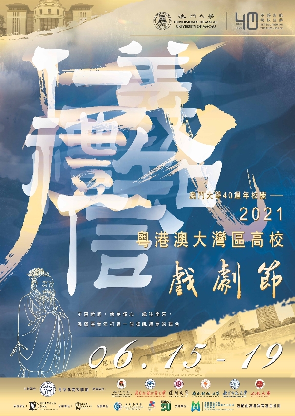 “2021粤港澳大湾区高校戏剧节”由粤港澳高校联盟主办,澳门大学学生会戏剧社承办,霜冰雪创作实验剧团合办,澳门大学、澳门大学学生会协办,并得到粤港澳大湾区西岸科技创新和人才培养合作联盟的支持。近百名来自澳门大学、广东外语外贸大学、深圳大学、南方科技大学、北京师范大学珠海校区、北京师范大学珠海分校和五邑大学的学子将聚首澳门进行演出。