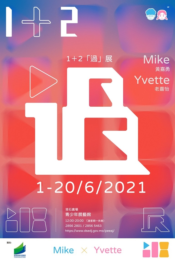 教育及青年发展局辖下青少年展艺馆将于2021年6月1日至6月20日展出“1+2 ‘过’── 老嘉怡、黄嘉勇作品展”。是次展览将展出澳门理工学院美术教育专业课程实习老师老嘉怡和青年插画师黄嘉勇的作品,展览名称1+2 ‘过’是指两位作者在创作路上的同一理念和二人创作的成长过程。展品内容是描述生活的常态和小细节,部分作品是表达踏入社会工作后的心理变化,和对人际关系的看法。展品以电绘和手绘形式表达人和事物。作者希望观众欣赏作品时,会唤起日常中曾被忽略的事情。