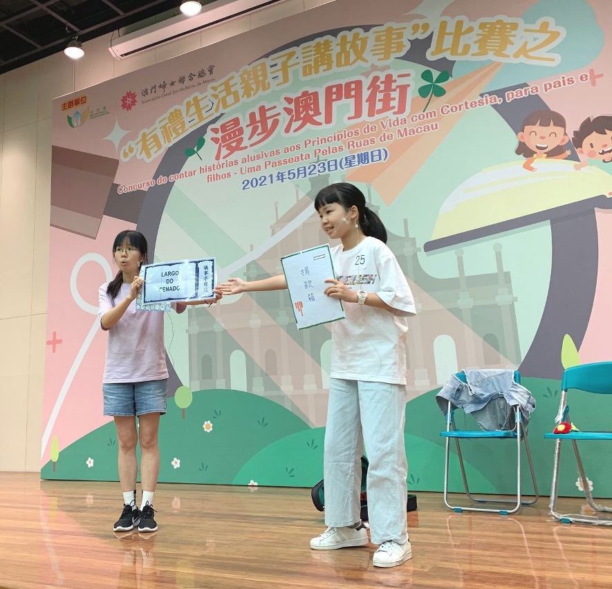 由市政署与澳门妇女联合总会合办的“有礼生活亲子讲故事”比赛之漫步澳门街于日前顺利举行,来自11间学校的70多名学生及家长,组成29个队伍参加比赛,最终由梁乐游小朋友及其家长以“时空乐游记”囊括冠军及最佳台风奬。