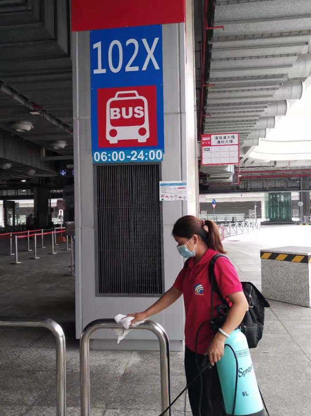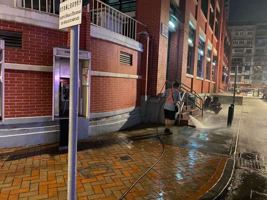 因应新型冠状病毒肺炎疫情发展,市政署持续协调外判公司在本澳各区以稀释漂白水清洗街道、出入境口岸等公共区域,并且加强巴士站候车亭、公厕、公共渠口、行人道扶手及栏杆等公共设施的清洁消毒工作,减低病毒散播风险。