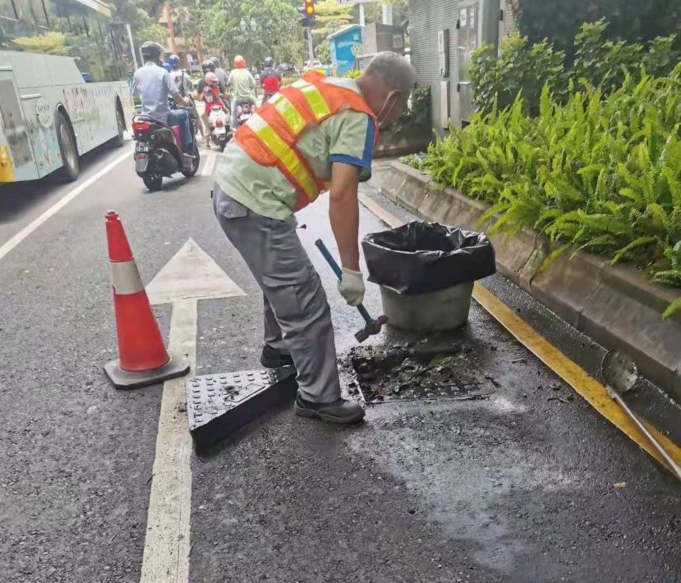 因应近日本澳天气不稳,市政署加紧排查全澳渠网,持续加强各区清渠工作,确保下水道疏通。其中于今(6月12日)清渠人员发现于南湾大马路中华广场垃圾房附近渠道溢出大量污水且严重淤塞,已随即派员清理疏导,挖出大量油脂污垢,怀疑涉及附近部食肆没有安装合适的隔油井或没有定期清理,将油污排入下水道,引致渠道淤塞,已即时派员巡查附近食肆隔油井运作,共巡查了周边4间食肆,对其中3间违规场所发出实况笔录并要求作出改善。