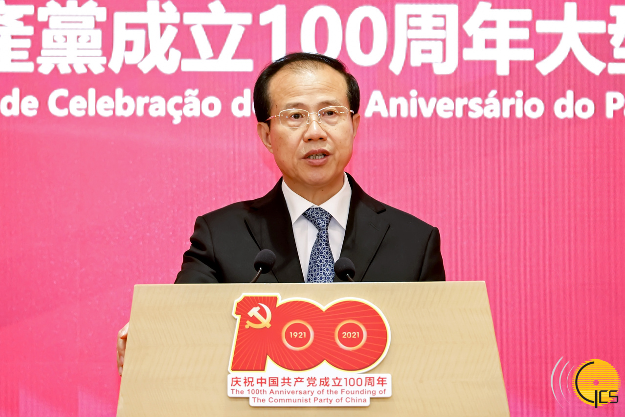 傅自应在致辞中表示,历史是最好的教科书,中国共产党的历史是中国近现代史中最为可歌可泣的篇章。回顾百年党史,可以得到三点深刻启示:一是历史选择了中国共产党。1840年鸦片战争后的旧中国,陷入苦难的深渊。中国共产党应运而生。从此,中国人民开始从精神上由被动转为主动,中华民族开始了艰难的但却是不可逆转的伟大复兴。二是实践证明了中国共产党。在中国共产党的领导下,中国人民实现了从站起来、富起来到强起来的伟大飞跃,即将实现第一个百年奋斗目标。没有中国共产党领导,就不可能取得今天这样的成就。三是中国共产党是“一国两制”的创立者、践行者、维护者和领导者。港澳回归祖国以来,中国共产党始终坚守“一国两制”的初心,宣示“一国两制”方针不会变、不动摇,确保“一国两制”实践不变形、不走样,“一国两制”实践经受住了风险考验,取得了巨大成功,并将继续书写华彩篇章。