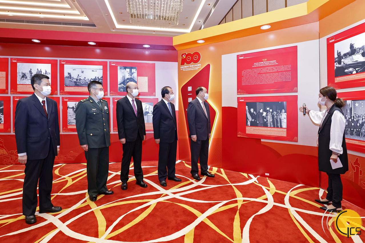 6月23日上午,由国务院新闻办公室、澳门特别行政区政府、中央人民政府驻澳门特别行政区联络办公室主办,澳门基金会、南光(集团)有限公司承办的“中国共产党的100年——庆祝中国共产党成立100周年大型主题图片展”,在中国与葡语国家商贸合作服务平台综合体开幕。澳门特别行政区行政长官贺一诚、中央人民政府驻澳门特别行政区联络办公室主任傅自应、外交部驻澳门特派员公署特派员刘显法、中国人民解放军驻澳门部队司令员徐良才、国务院新闻办公室港澳台新闻局副局长谢应君主礼,澳门特别行政区立法、司法机关负责人、政府主要官员、中央驻澳机构负责人,以及社会各界代表出席开幕式并参观图片展。