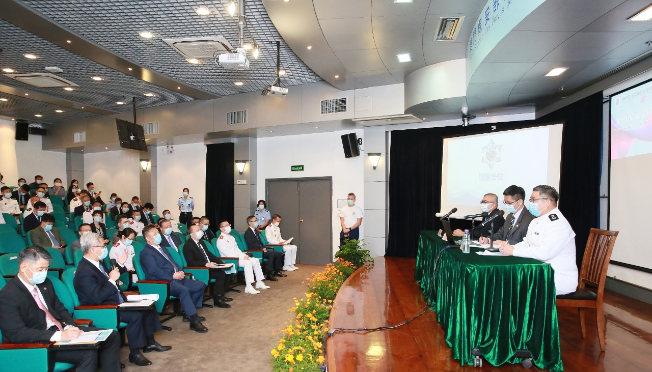 保安高校三十三周年校庆典礼除由保安司黄少泽司长担任主礼嘉宾外,还邀请到中央驻澳联络办公室警务联络部宋东翔副部长、警察总局梁文昌局长、澳门海关黄文忠关长、中国人民解放军驻澳门部队金纬副参谋长、澳门保安部队及保安部门纪律监察委员会欧安利主席、以及保安司辖下部门、大专院校和政府部门等嘉宾代表出席。此外,为配合防疫措施,同时扩大研讨会的覆盖面,是次研讨会亦以在线直播形式与各澳门保安部队和保安部门人员分享。