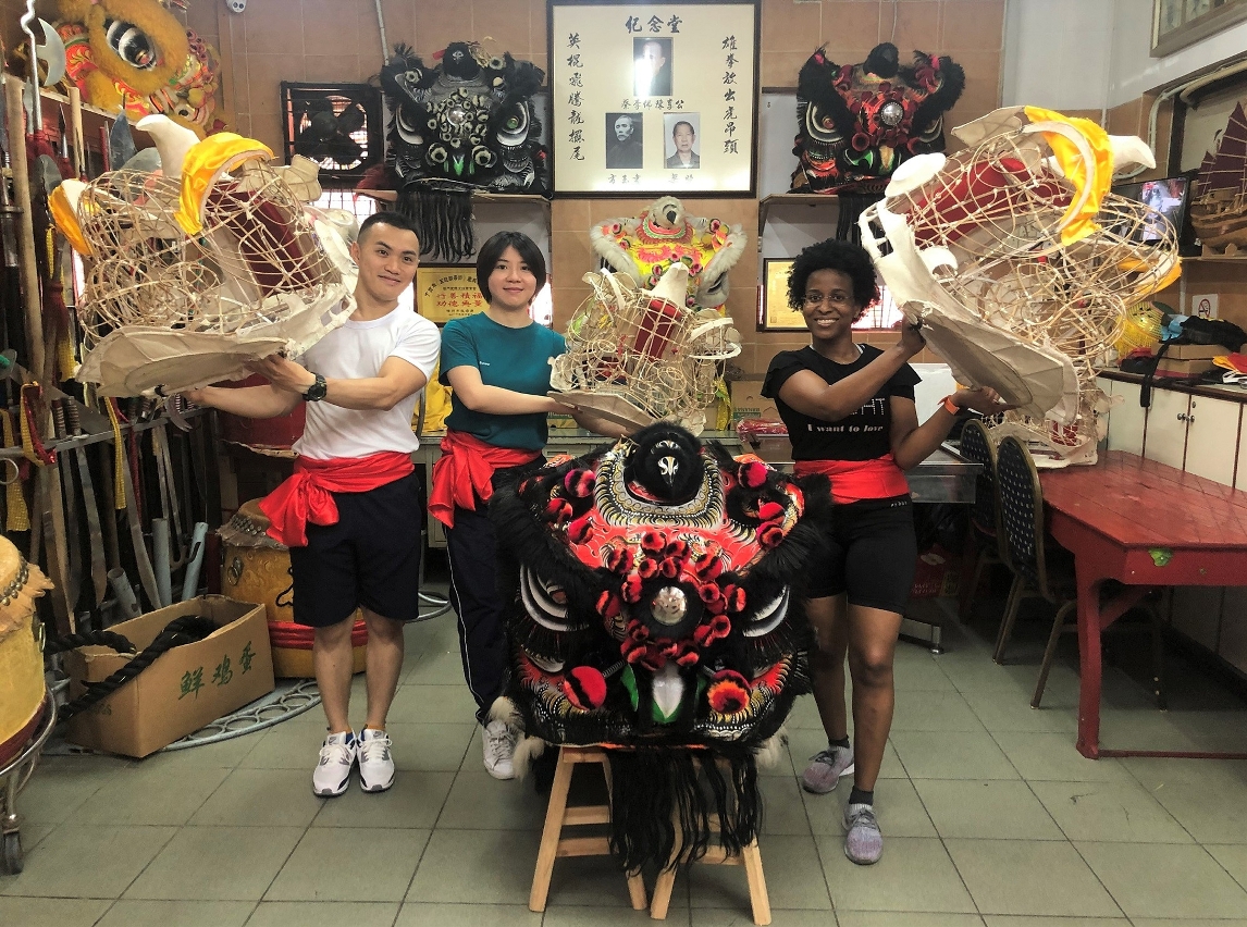 • 澳理工国际生Aline (右一) 体验中华文化精粹