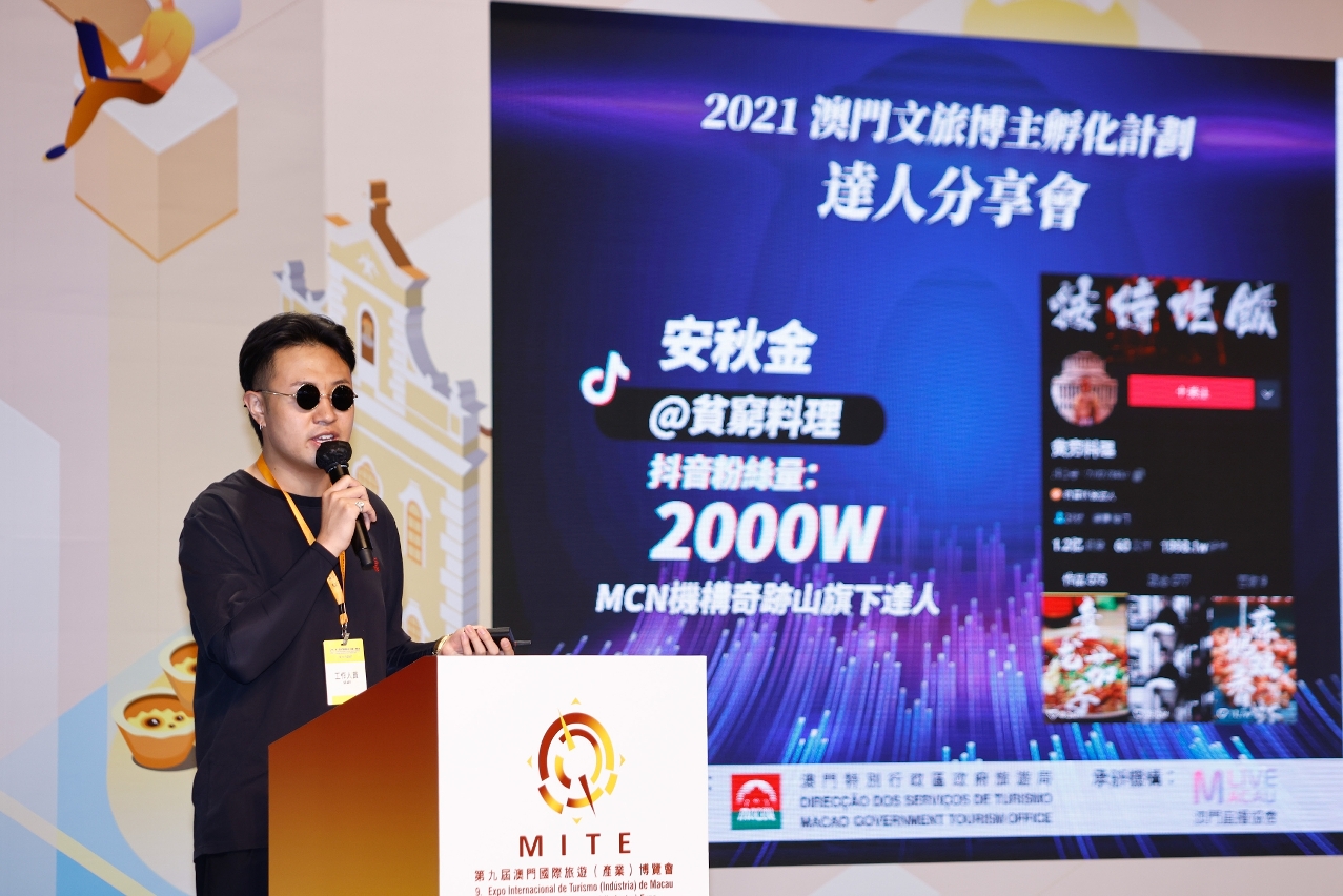 由旅游局主办、澳门直播协会承办的“澳门文旅博主孵化计划”(下称“计划”)今(11日)假第九届澳门国际旅游(产业)博览会会场正式启动,同场举行达人分享会,内地知名美食博主“贫穷料理”主理人安秋金应邀担任主讲嘉宾,分享短片和直播推广经验。