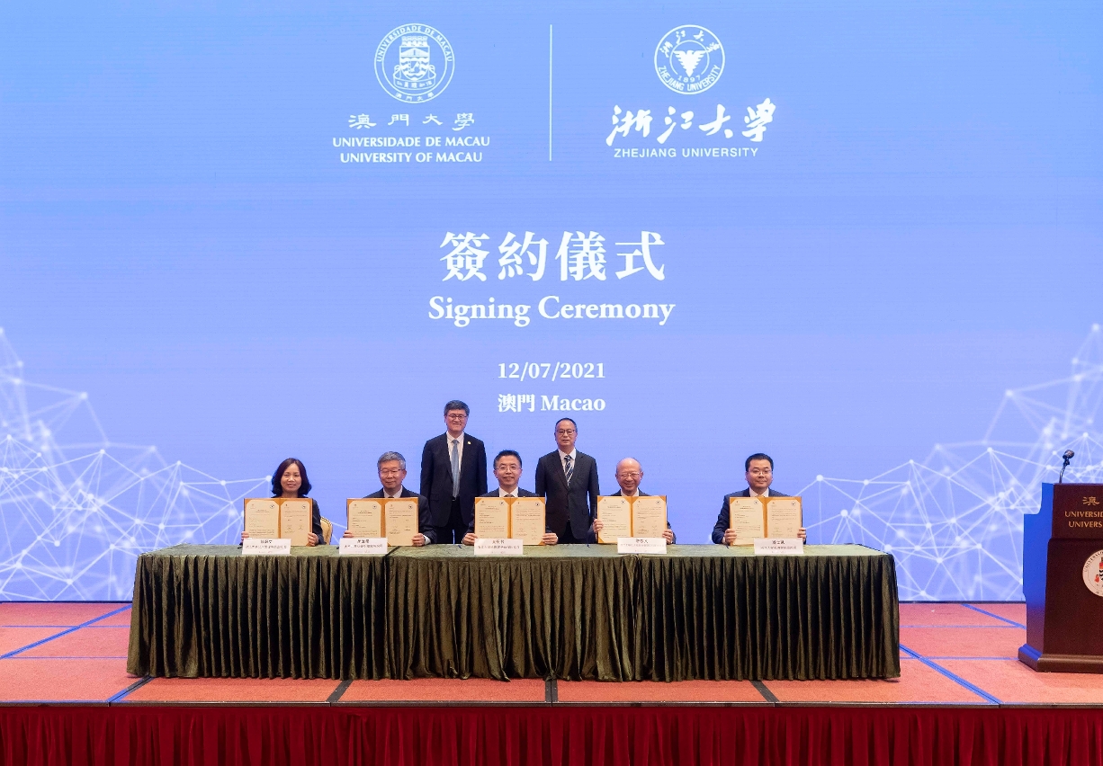在宋永华和任少波的见证下,澳大副校长、亚太经济与管理研究所代所长许敬文与浙大国际联合商学院院长贲圣林和经济学院副院长潘士远签署了《澳门大学与浙江大学共建金融创新联合研究中心框架协议》;同场,澳大社会科学学院院长胡伟星与浙大公共管理学院副院长张蔚文签署了《澳门大学与浙江大学共建智慧政务联合研究中心框架协议》。其后,宋永华和任少波主持了“澳门大学——浙江大学金融创新联合研究中心”及“澳门大学——浙江大学智慧政务联合研究中心”的揭牌仪式。是次合作将促进两校在金融创新及智慧政务领域的交流,共同培养相关学科的专业人才,为澳门、粤港澳大湾区及全国的高等教育和科研发展带来裨益。