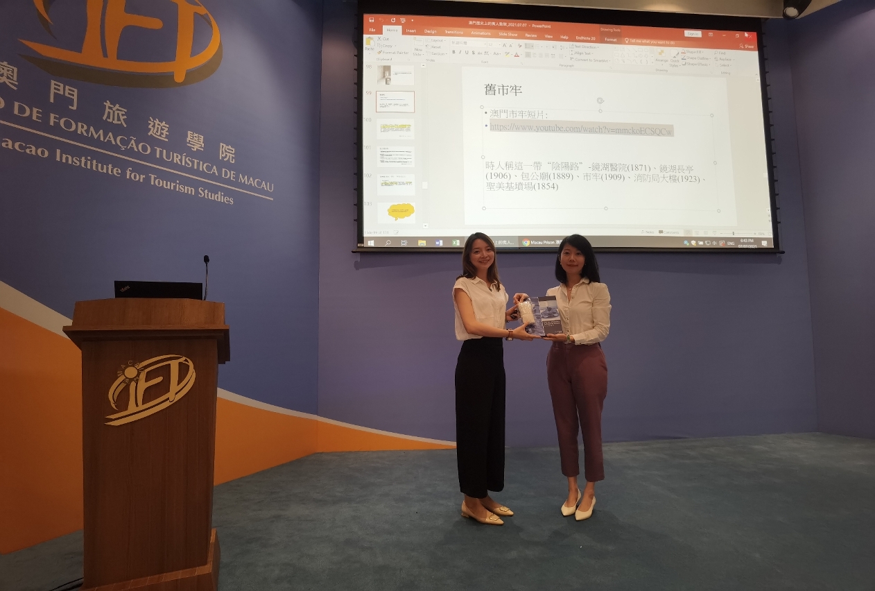澳门旅游学院持续教育学校于2021年7月7日举办了“澳门历史上的夷人监狱”专题讲座,由澳门口述历史协会副理事长陈淑怡小姐担任主讲嘉宾。陈小姐早前在学院修读澳门文化导游课程及世界文化遗产导赏课程,取得优秀成绩,并获发世界文化遗产专业导赏员(澳门)证书。