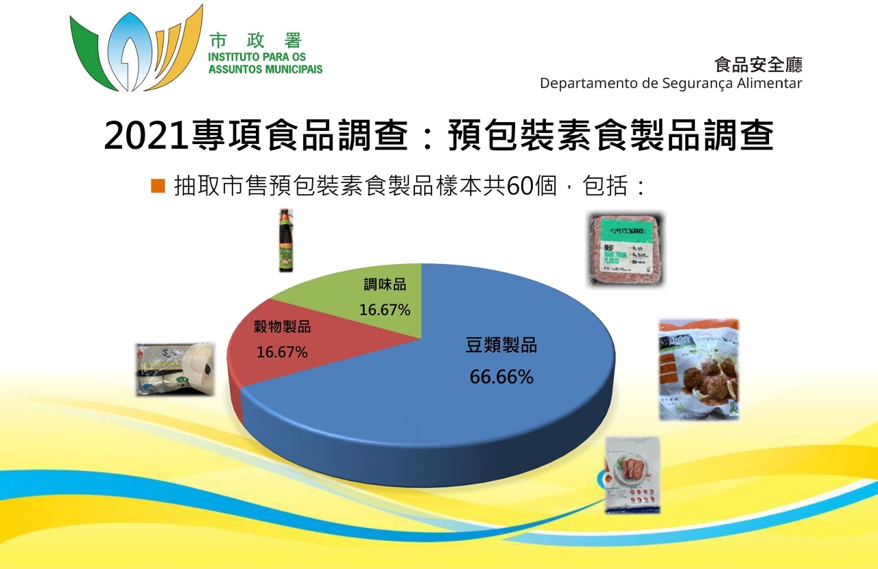 为瞭解本澳预包装素食制品的食用安全情况,市政署于市面抽检共六十个预包装素食制品样本,进行重金属、真菌毒素、食品添加剂和非食用色素检测,所有样本的检测结果均未见异常。