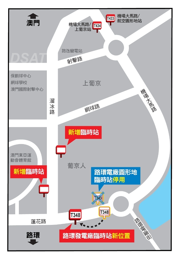 随着路氹填海区的发展,溜冰路周边多个大型酒店项目即将落成。为配合公众出行需求,明日(17日)首班车起,巴士51、59路线临时调整行程及停靠安排,详情可参阅附表。