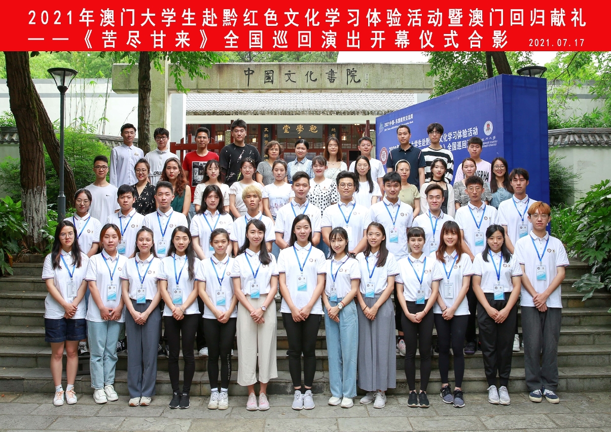 为庆祝中国共产党建党100周年,澳门大学和贵州大学合办黔澳“万人计划”红色文化学习体验活动,让学生了解党史故事,学习红色文化。其中一项重头活动为澳大学生会戏剧社于贵州大学演出过百场原创得奖话剧《苦尽甘来》,致敬共产党的百年伟业及贵州大学明年的120周年校庆。