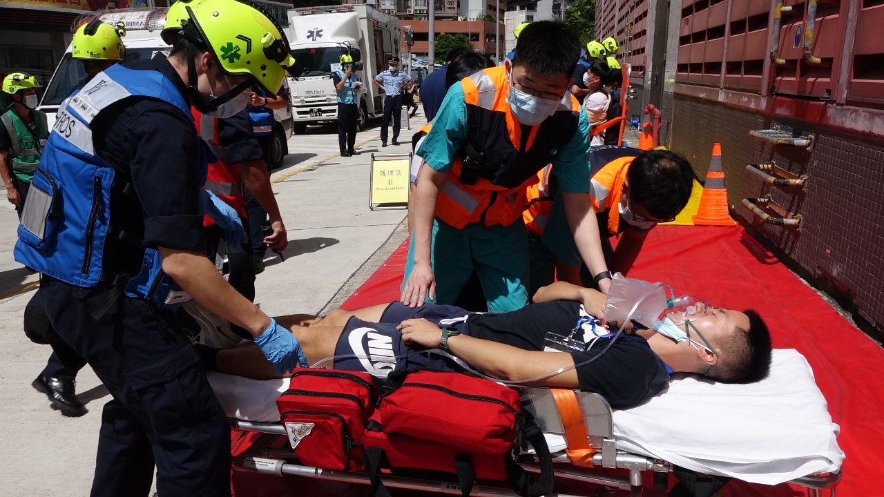 另外,在模拟火警发生时,青茂口岸珠方边检范围内有3名本澳居民因吸入浓烟感到身体不适,并要求回澳就医。因此,双方透过相关协调机制,由珠海市卫生健康局把3名澳门居民送到青洲跨境工业区出入境口岸位置,并交由澳门消防局救护车接载,模拟送往澳门仁伯爵综合医院治理。