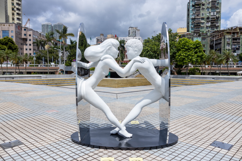 “艺文荟澳:澳门国际艺术双年展2021”推出共30项大型展览,其中公共艺术展以“幸福技术”为主题,作为主场展“全球化的进与退”公共空间的延展,表现艺术家们对创造幸福的思考。由泰国艺术家贡坎创作的公共艺术作品《想念你》现已亮相南湾.雅文湖畔,为公众呈现美好的幸福风景。