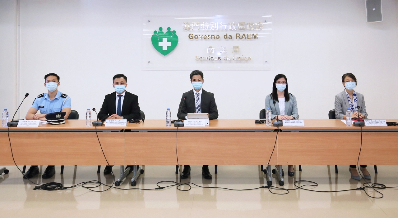新型冠状病毒感染应变协调中心(下称应变协调中心)于今(2)日举行记者会,仁伯爵综合医院戴华浩医务主任、教育及青年发展局非高等教育厅黄嘉祺厅长、旅游局公共关系处蓝同好处长、治安警察局公共关系处李德辉处长和疾病预防控制中心传染病防制暨疾病监测部梁亦好协调员共同会见传媒。