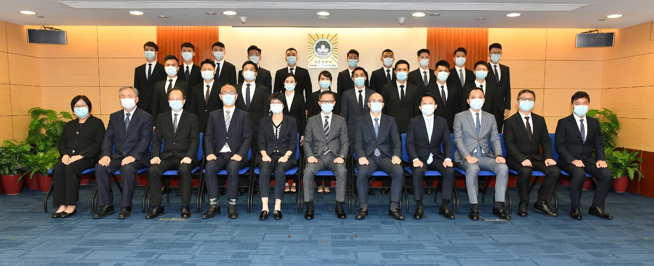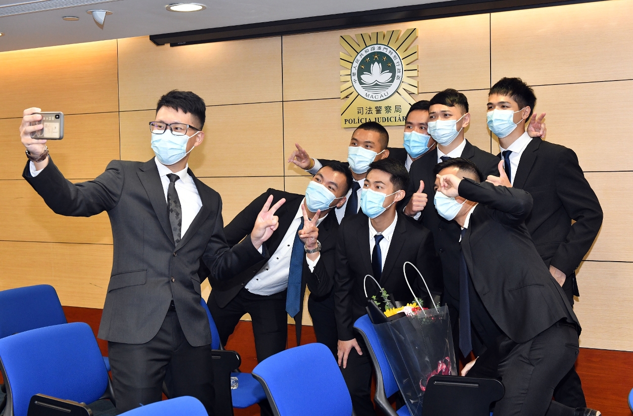 司法警察局于2021年9月23日在总部大楼举行“第20届实习刑事侦查员培训课程”结业典礼及签约仪式,40名学员完成五个多月的培训课程,获颁发结业证书,并在薛仲明局长、杜淑森和陈坚雄两位副局长,以及各部门主管的见证下,签约成为实习刑事侦查员,随即被分派到多个刑侦附属单位展开为期一年的实习,参与各项执法实务工作。为配合特区政府防疫工作,全部出席人员均做好防疫措施。