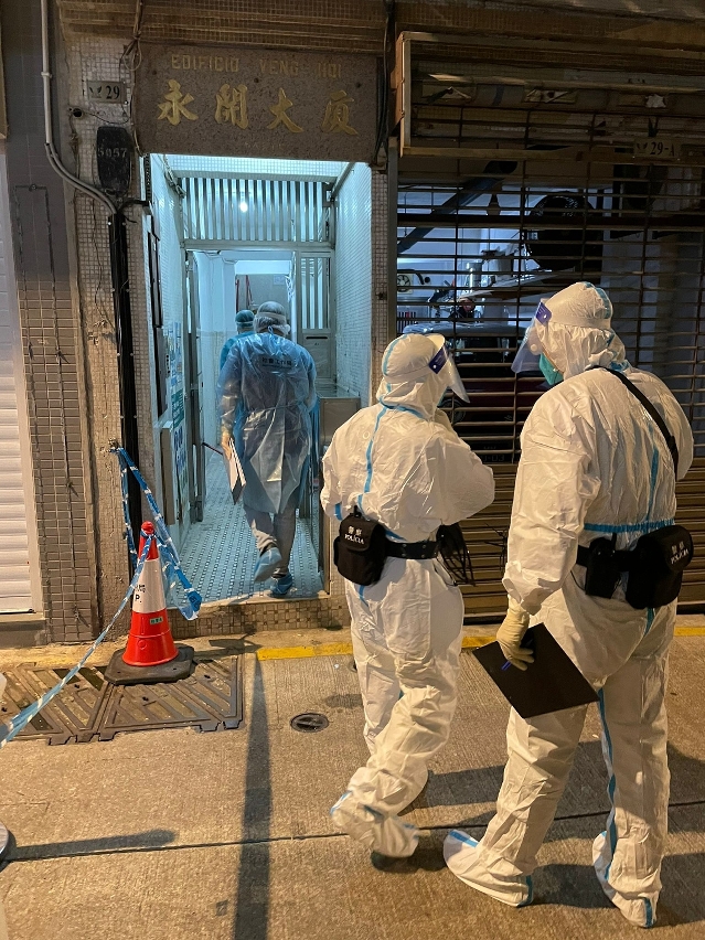 早前,市政署已完成上址大厦公用空间之大型清洁及消毒工作,并于防控区内搭建临时核酸采样站及前线协调站,以便卫生当局开展核酸筛查及后续工作。如对防疫措施有任何查询,可致电新型冠状病毒感染应变协调中心查询热线28700800。
