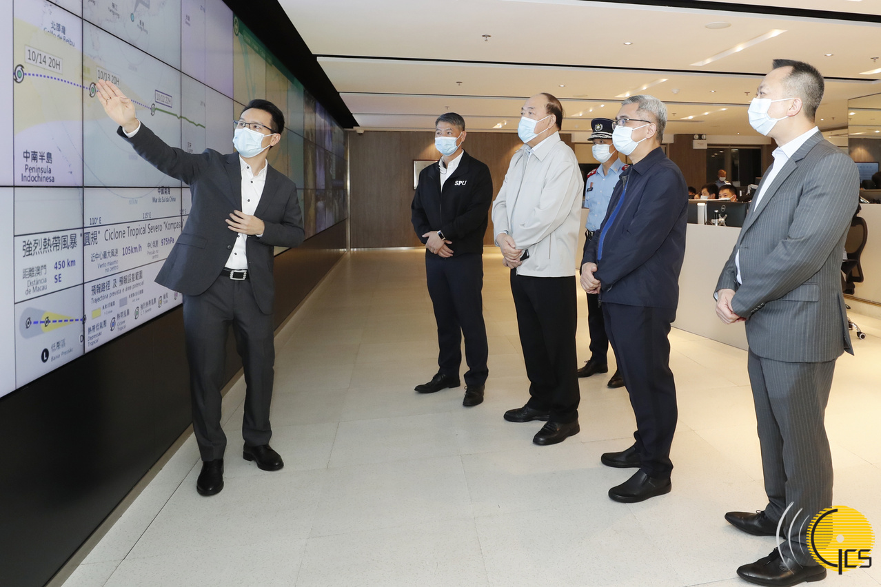 行政长官到达民防中心后,首先巡视控制中心,听取保安司司长、民防中心联合行动指挥官黄少泽,警察总局局长、辅助联合行动指挥官梁文昌,海关关长黄文忠及治安警察局局长吴锦华等汇报应对台风“圆规”的工作部署和对本澳的影响。随后与民防架构21个部门领导举行工作会议。