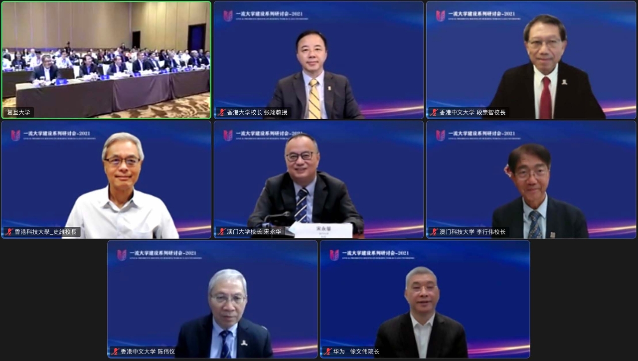 为加快推进一流大学建设,澳门大学参与由复旦大学主办的2021年度“一流大学建设系列研讨会”,与北京大学、清华大学、哈尔滨工业大学、复旦大学、上海交通大学、南京大学、浙江大学、中国科学技术大学、西安交通大学、香港大学、香港中文大学、香港科技大学、和澳门科技大学的校长、副校长,以及近百名代表共聚线上开展研讨,探讨一流大学建设思路,探索中国特色世界一流大学实现路径。