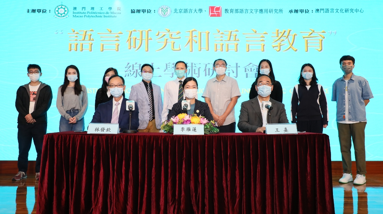 为助力澳门“一中心、一平台、一基地”建设,加强中外文化教育交流,由澳门理工学院主办,北京语言大学、教育部语言文字应用研究所协办,澳门理工学院澳门语言文化研究中心承办的“语言研究和语言教育”学术研讨会,于10月27日上午于线上开幕,在北京及澳门设有主会场。北京语言大学副校长张宝钧、北京语言大学汉语国际教育研究院院长吴应辉、澳门理工学院副院长李雁莲、澳门理工学院人文及社会科学高等学校校长林发钦、澳门理工学院中西文化研究所所长王熹等主持开幕仪式。来自内地和澳门多家高等院校和研究机构的二十多位学者参加了会议。