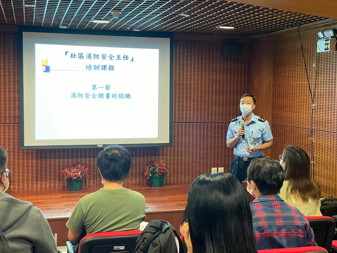 为继续扩大上述机制的成效,消防局于本年9月下旬举办第五期“社区消防安全主任”培训课程,期间因应本澳疫情变化而暂缓培训工作,及后于本年10月30日恢复培训。是次课程邀请了各坊会及团体共42人参与。培训课程分为消防理论知识和灭火实习两部分,内容包括灭火理论、救护知识、燃料安全知识,以及教导如何正确使用灭火筒和消防喉辘的操作等。至今,消防局一共完成了五期的“社区消防安全主任”培训课程及两期的进阶培训课程,均取得良好成效及正面作用。