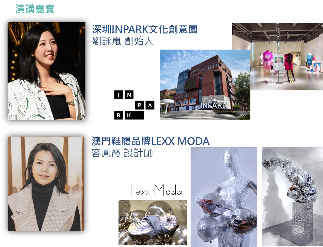 是次交流会邀请深圳INPARK文化创意园创始人刘咏岚及澳门鞋履品牌Lexx Moda设计师容凤霞担任主讲嘉宾,她俩会分别就深圳INPARK文化创意园、澳门品牌进驻该园区、双方合作模式进行介绍;届时两位亦将分享现时两地的合作机遇及优势,参加者可以透过是次交流会了解澳门文创产业的商企如何透过拓展大湾区市场,提升其知名度及开拓商机等。