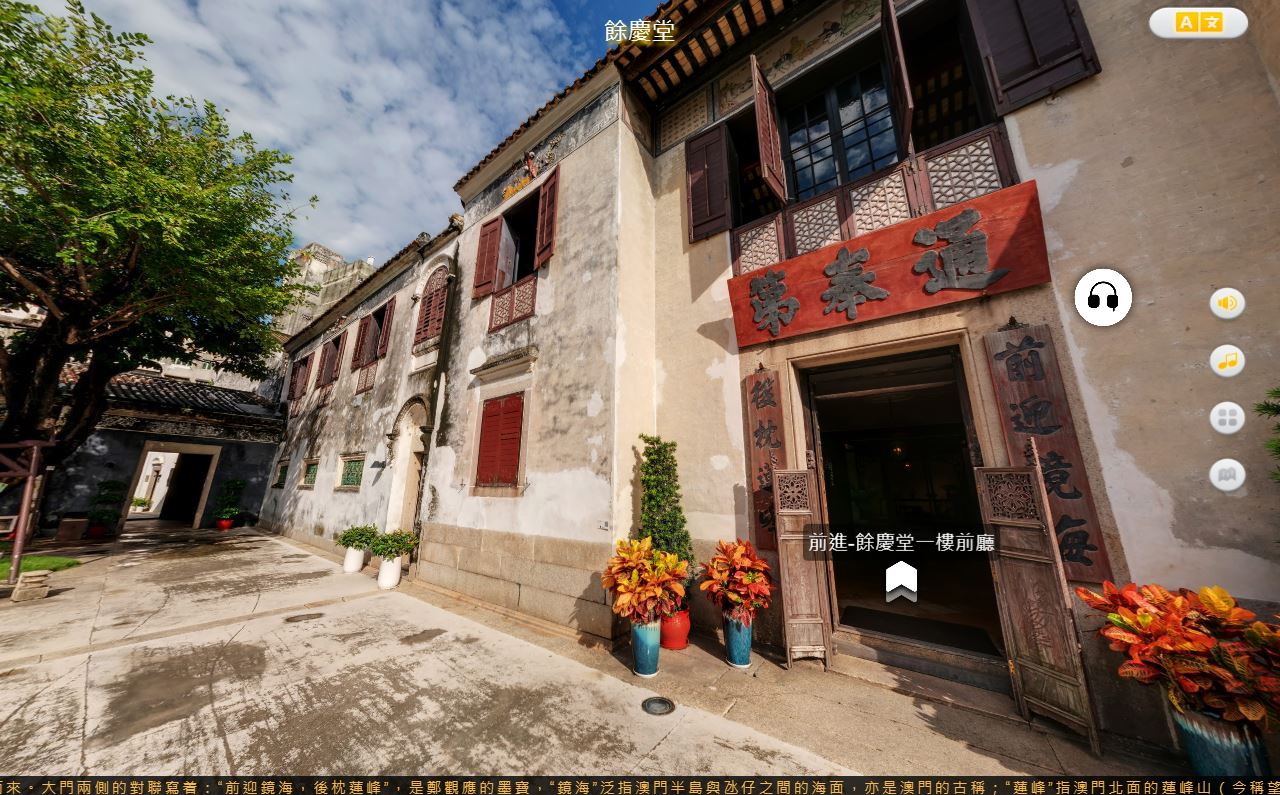 世遗VR虚拟导览提供“景区互动”及 “展品互动”两种线上导览体验,导览提供粤、普、葡、英四语导赏,公众只需滑鼠点撃或屏幕触碰,便可以自在畅游两个世遗景点,观赏东望洋炮台和郑家大屋360度环境,通过点撃建筑局部和展品位置,即可浏览建筑细节及展品高清相片,同时收听语音导览和查阅文字说明,随时随地线上畅游澳门世遗。
