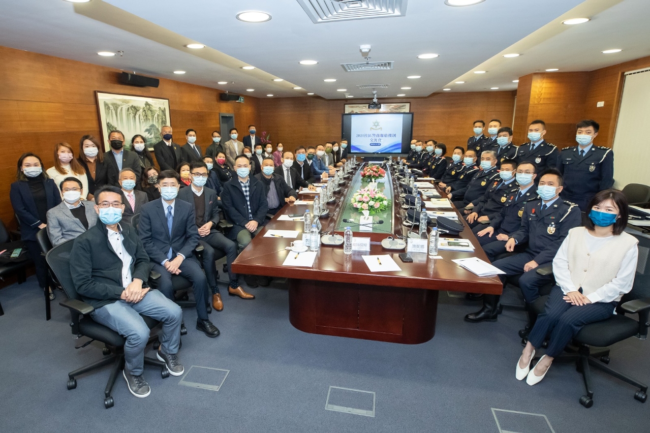 于11月23日上午,治安警察局在北安出入境事务大楼举行「2021社区警务联络机制」交流会,会议由治安警察局吴锦华局长主持,并邀请到多个社团及坊会代表出席,互相交流社区治安形势、交通执法措施、警民关系和出入境新法等多个议题。治安警察局与会领导包括黄伟鸿副局长、梁庆康副局长、伍素萍副局长及多个部门主管。
