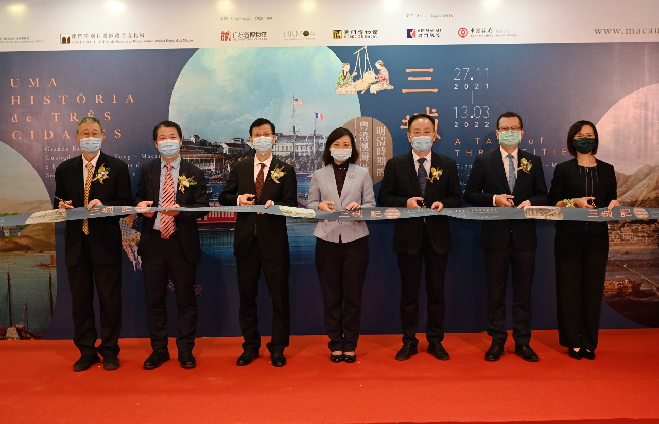 为促进粤港澳大湾区人文湾区的建设,进一步加强粤港澳三地之间的合作,文化局辖下澳门博物馆举办“三城记--明清时期的粤港澳湾区与丝绸外销”,展览于今日(11月26日)在澳门博物馆大堂举行开幕仪式,由澳门特别行政区政府文化局局长穆欣欣、中央人民政府驻澳门特别行政区联络办公室宣传文化部副部长殷汝涛、广东省文化和旅游厅二级巡视员周显华、广东省博物馆馆长肖海明、中国银行(澳门分行)副行长陈晓平、澳门航空股份有限公司总经理助理温德鑫及澳门博物馆馆长卢可茵主礼,香港特别行政区政府民政事务局局长徐英伟亦透过影片参与开幕仪式。展期至2022年3月13日,欢迎公众莅临参观。